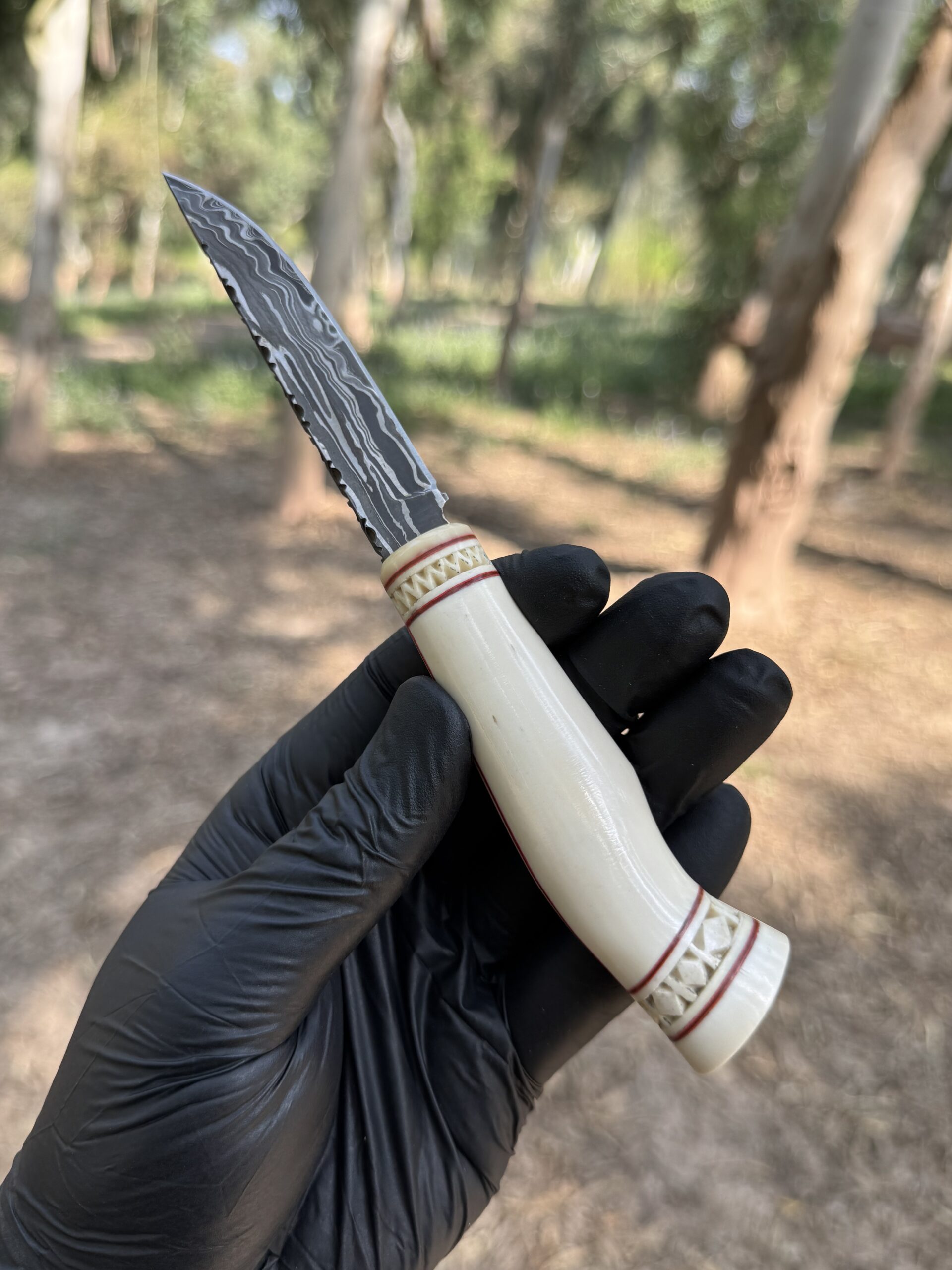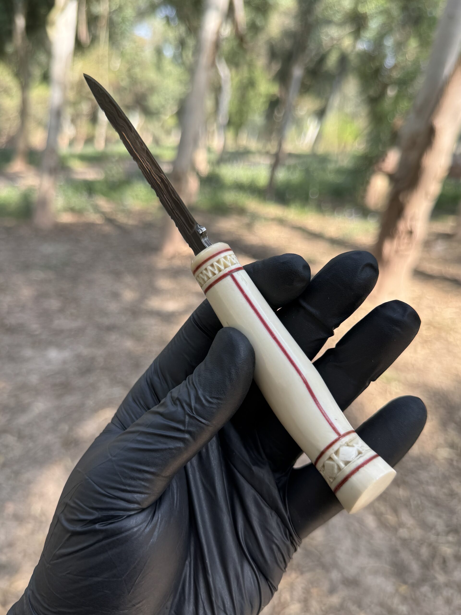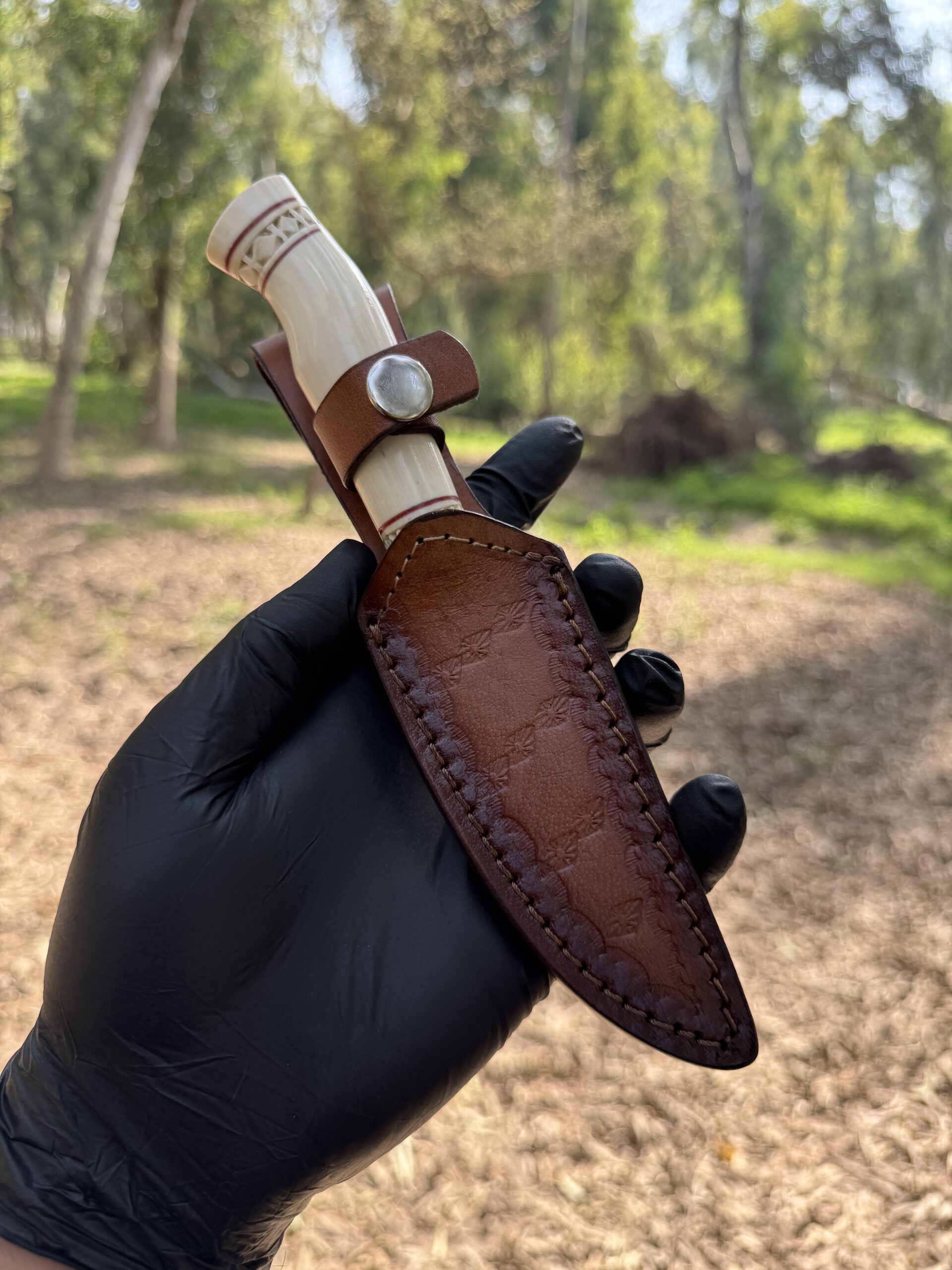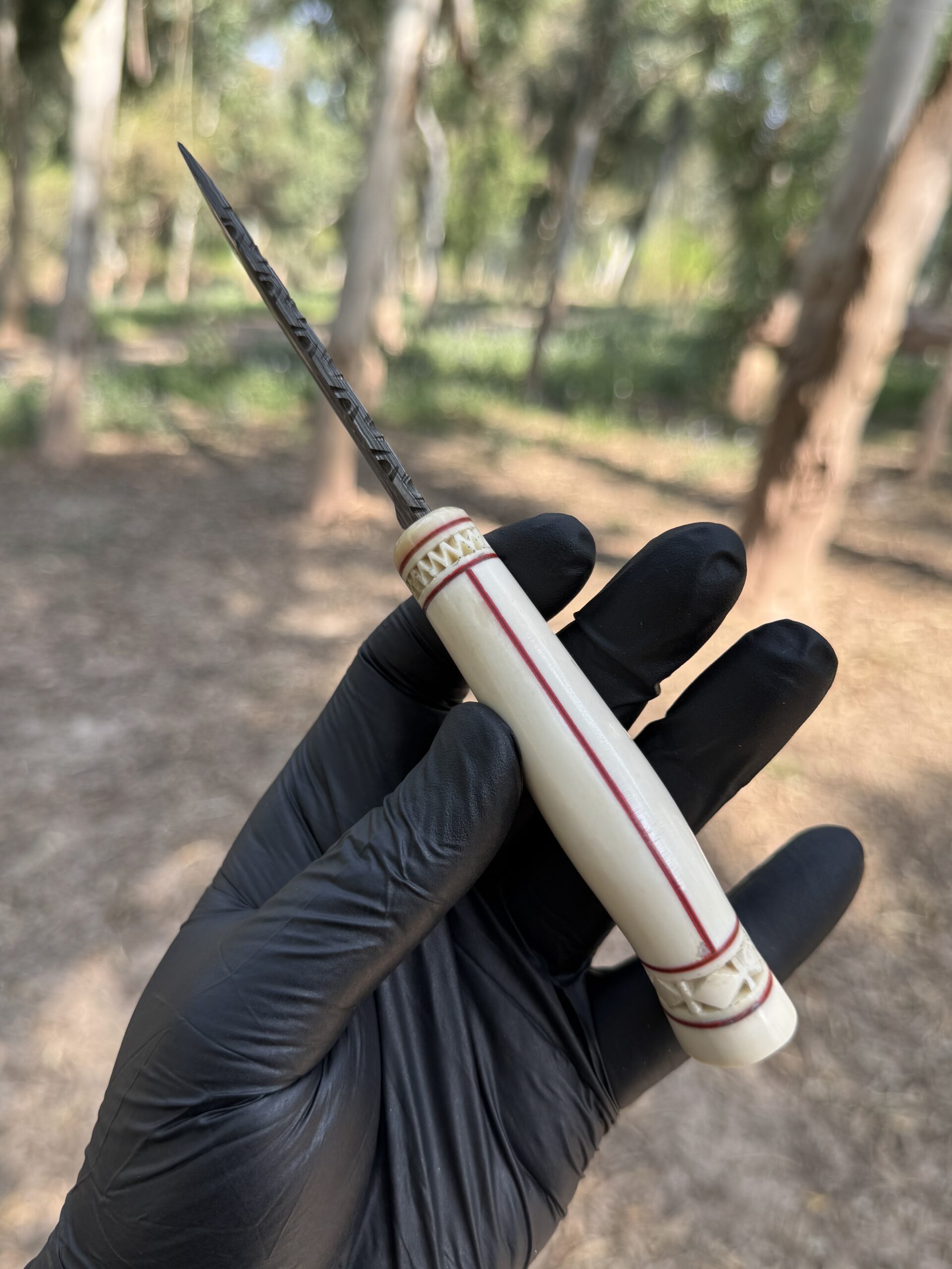 Handle – Hand Carved Camel bone with Fiber Liners